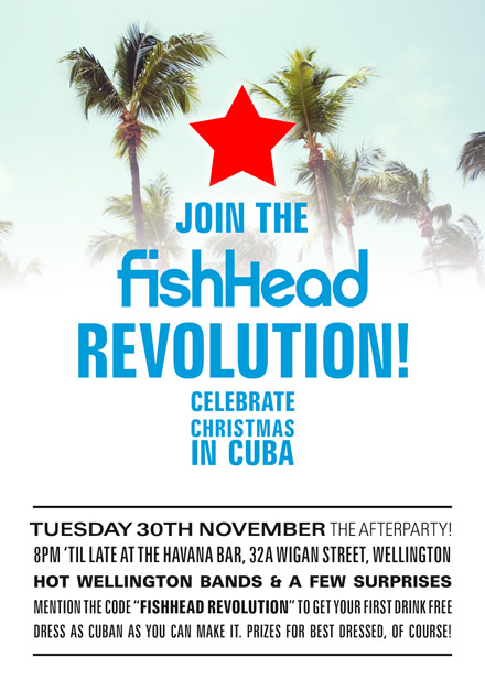 What better way than to have a drink on FishHead? Come to the afterparty of Christmas in Cuba from 8pm at Havana Bar on Tuesday November 30, dress like a Cuban, check out some bands, and have some fun.