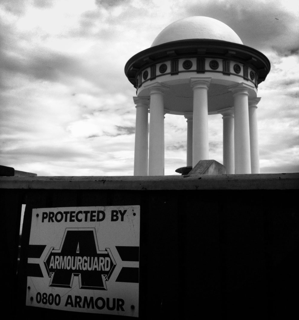 I weave through concrete islands and metal barriers to the edge of the Basin Reserve. Just inside the fence is a monument to William Wakefield: as an abduction accomplice, mercenary, principled duelist and city father, he was the marginally more respectable of the Wakefield boys. The memorial is supposed to suggest a Grecian temple, but on a shrunken scale, and the geometry could just as well evoke rural water towers or alien octopodes. Far from symbolising timeless dignity, its history is as dubious and peripatetic as its namesake. After shipping out from the mother country, it languished for decades in the corporation yard before its first installation, and has continued to shift in and out of the grounds ever since.