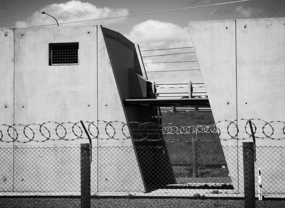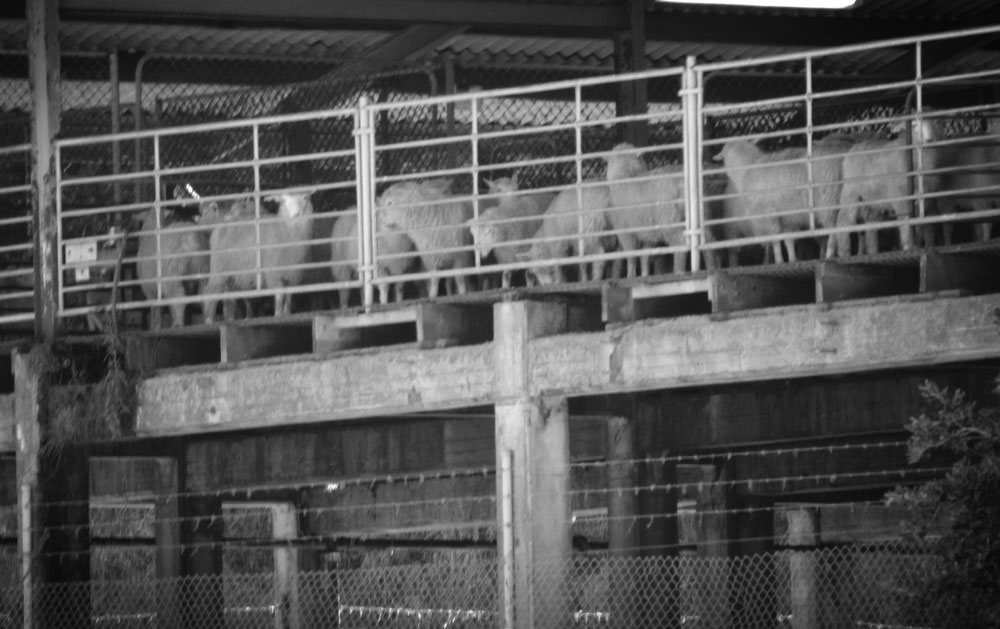 Back to the highway, and up again. The northeast slopes are raw and craggy, true gorge, where hunters still track and kill wild goats, but to the west the valley opens up into a broader basin, where docile animals and the earth itself are torn apart and processed for consumption. Shrill yellow hoppers mark the retail arm of the quarry that is slowly chewing its way north, crushing the landscape into bite-sized chunks of gravel. Further down the road, oblivious sheep spend their last animate hours penned beneath translucent roofs, stacked above barbed wire and an intestinal tangle of shining pipes. Warning signs brand me an intruder, but the blind trucks keep trundling by, paying no notice, so I wander further in, south of the abattoir.
