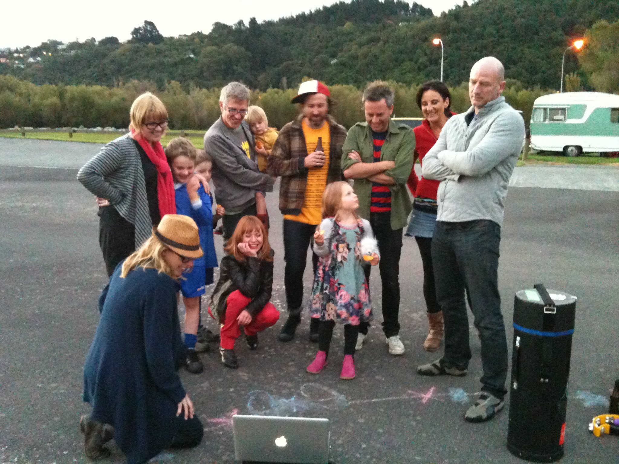 I was there with my caravan to provide cups of tea and moral support. It was terrifically fun, I even had a title, Craftsomethingorother, which seemed pretty apt. Here is a picture of us watching the playback of the various versions of the video (my caravan is the real star, fyi).