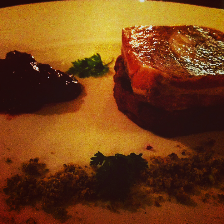 We were greeted at the door and offered a glass of fine wine and a range of canapés. The warm Pea Soup shooter with truffle oil and parmesan – silky smooth with the full-mouthed goodness that only truffle oil can offer. There were also Beetroot and Pine Nut creations, barely set with – I presume – gelatine, exploding with flavour and leaving you wondering “what just happened in my mouth” and reaching for a second (and third.)