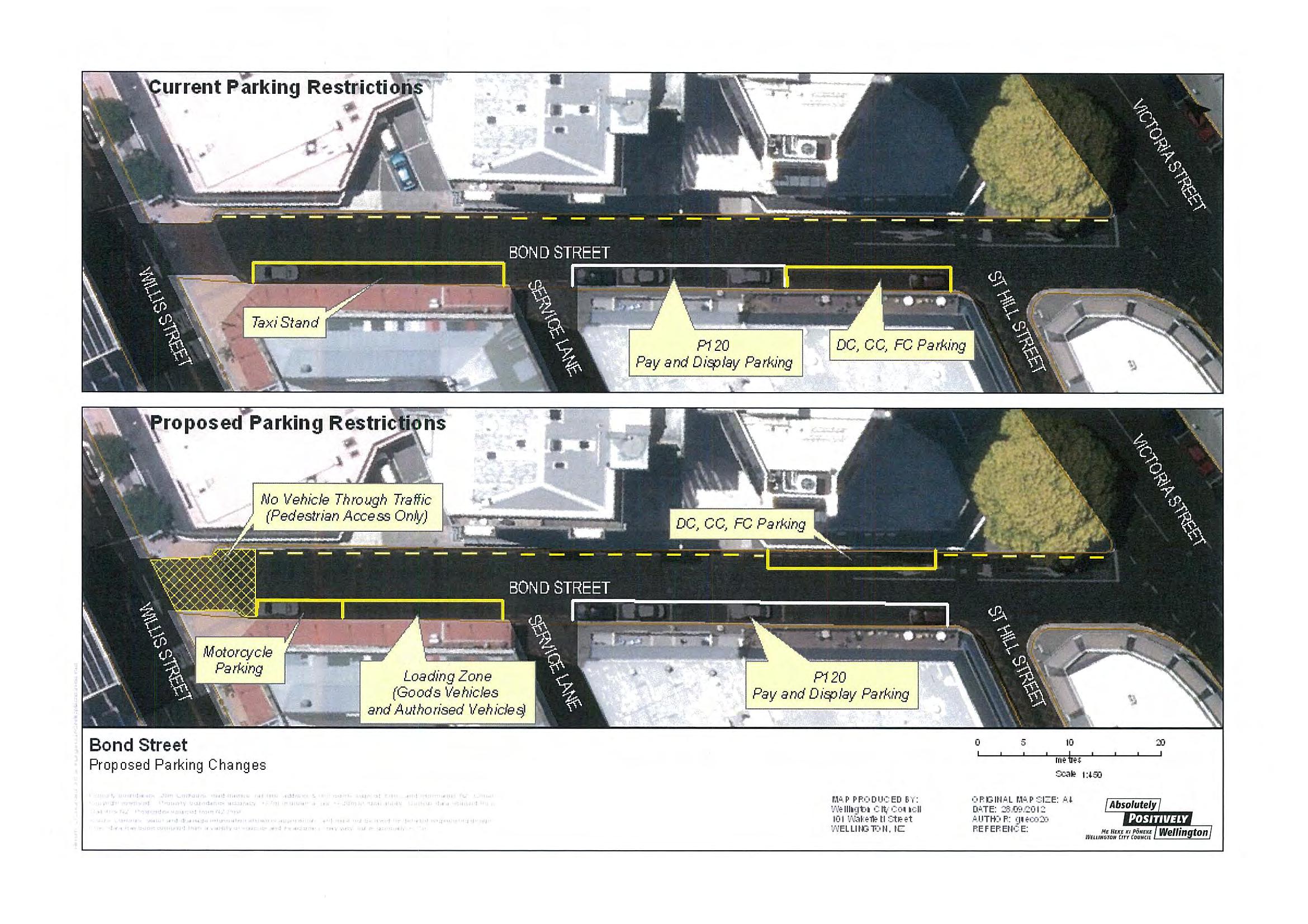 This idea is not without risks. There is a substantial amount of covered parking hidden within the nearby buildings. Drivers coming out onto Bond Street would have to be pedantically cautious at all hours of the day. This may stress patience at peak demand. Additionally, I don’t expect that councillors would be particularly agreeable to the removal of seven paid car parks, relative to their proposal, or four car parks currently on Bond Street, regardless of revenue projections. I would argue that the benefit to the businesses should take priority and also that a project like this is aligned to the Wellington 2040 Strategy.