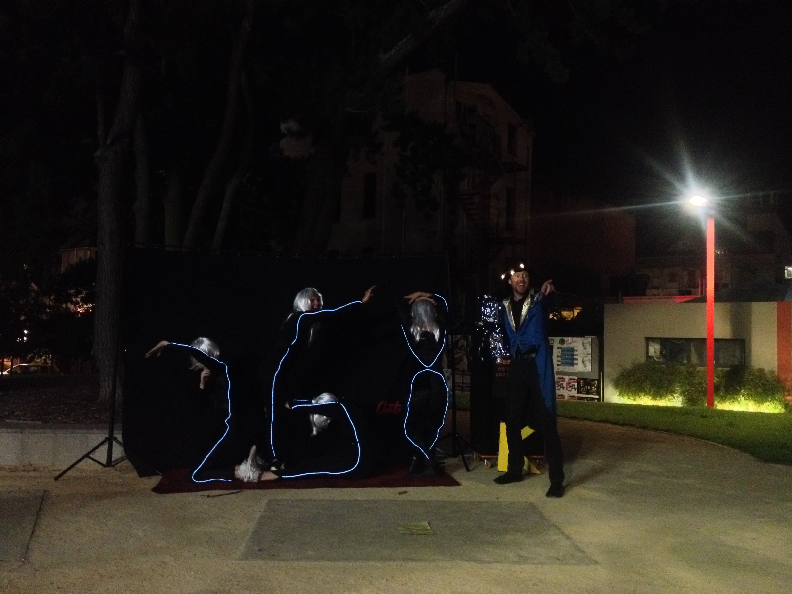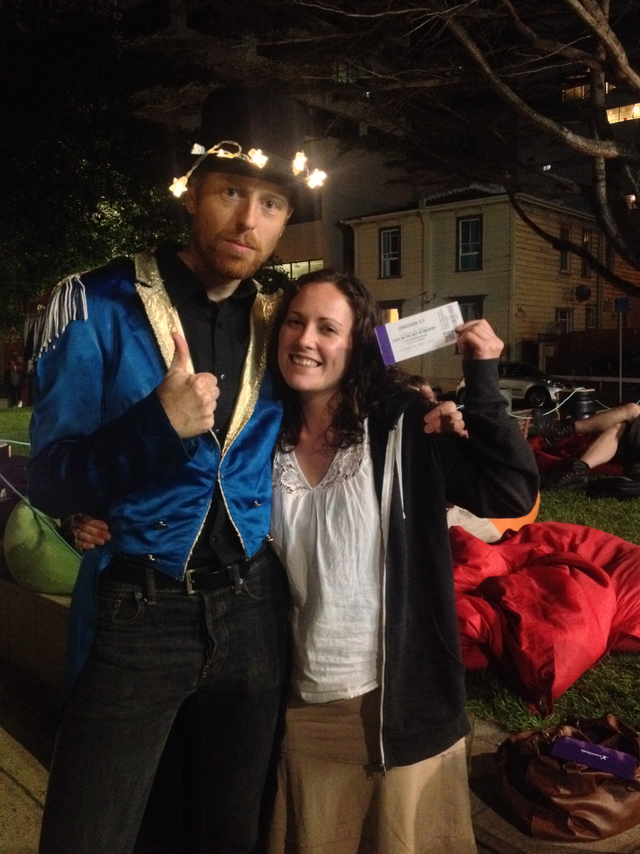 Here at the Wellingtonista we’re firm faves of Richard Aindow – former editor of Fish Head magazine, and Quiz Master of Wednesday nights at Mighty Mighty – so we were pleasantly surprised to catch him outside the Rogue & Vagabond last night with a group of lycra-clad lit-up young ladies in incandescent costumes.